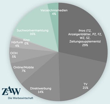Auch die Werbewelt ist bunter, bewegter und interaktiver geworden. Im Grunde hat sich aber nicht viel verändert. Die Menschen haben keinen Einfluss, ob bzw. welche Werbung sie zu Gesicht bekommen. Sie können, wenn überhaupt, Werbung „nur“ vermeiden: Sie arbeiten mit einem Adblocker, blättern in Zeitschriften einfach die Printanzeigen weiter, im TV und Radio schalten sie während der Werbeblocks zwischen den Kanälen hin und her oder wechseln komplett zu den vollständig werbefreien oben erwähnten Plattformen. Die folgende Übersicht vom ZAW zeigt, dass 80 Prozent der jährlichen Werbeausgaben in Werbekanäle fließen, bei denen die Werbung den Menschen aufgezwungen wird. Und Werbung vermeiden – das tun die Menschen.